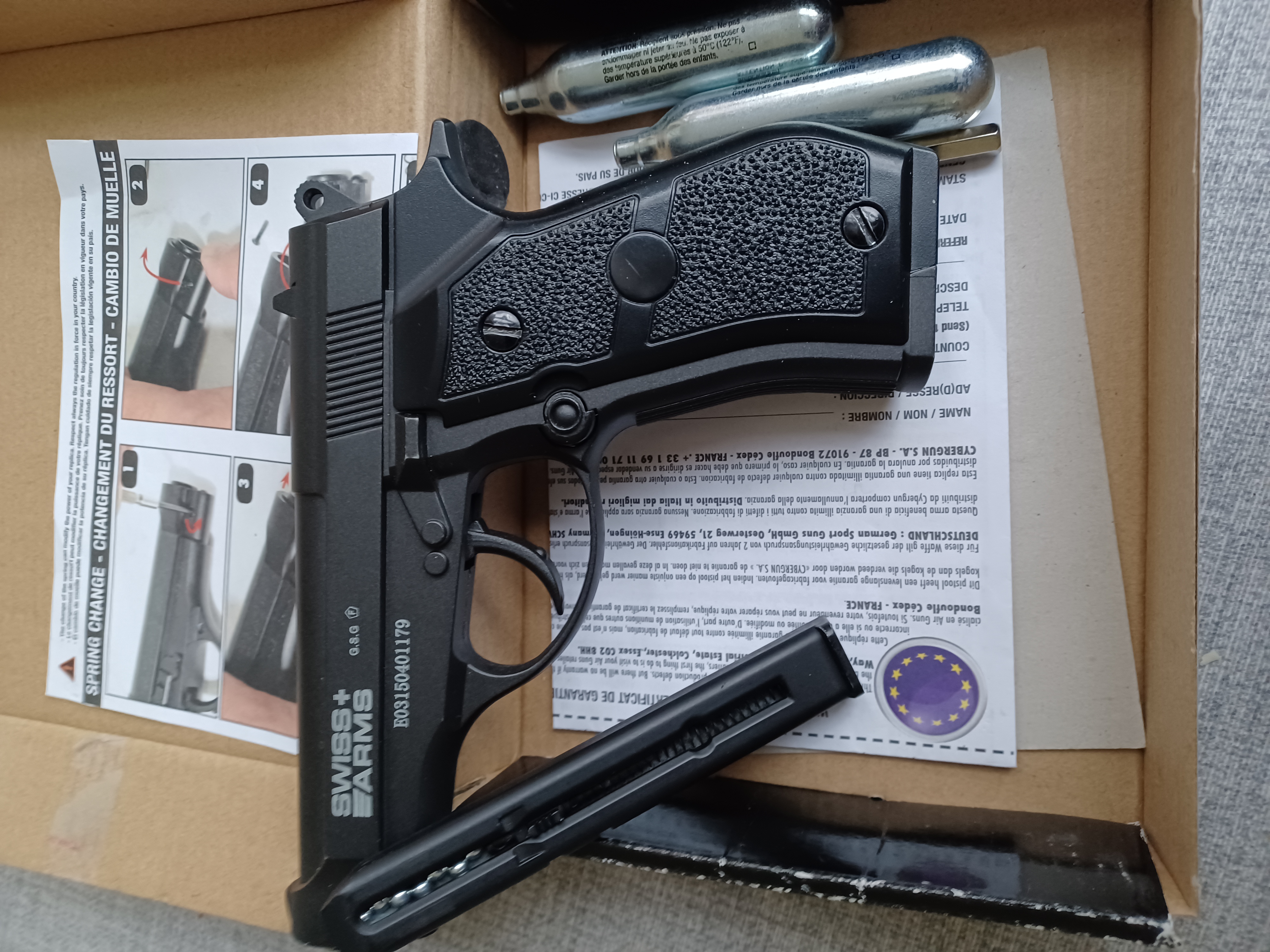 Zu kauf.wie neu Co2 Pistole 4.5mm GSG mit F.Model Swiss+Arms.aber helt keinen druck.C dichtung erneuerung ? )Fall fur hobby oder Bastler.Daarum verkauf als defect.Versand ab Postambt Kaldenkirchen Nettetal Deutsland