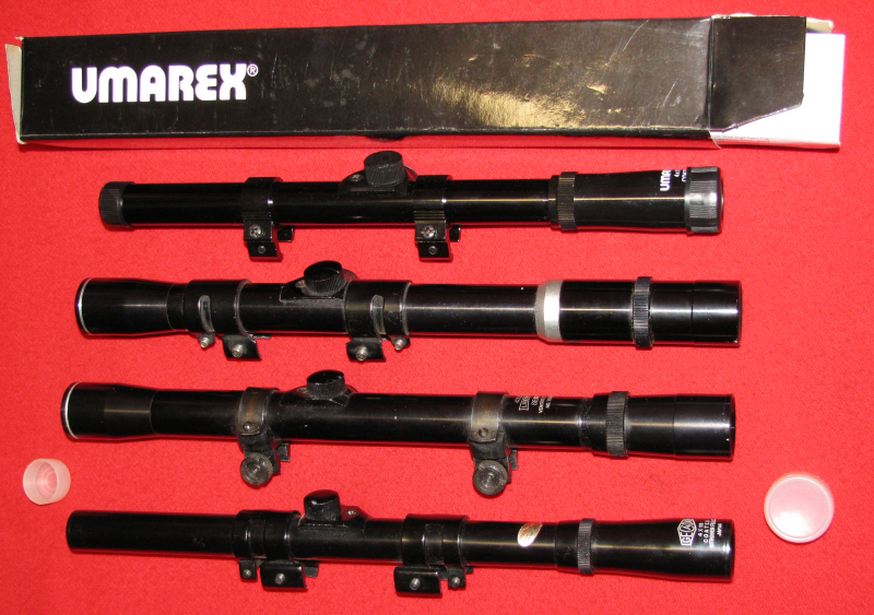 Zum Verkauf kommt ein Posten von 4 ZF / Zielfernrohren, alle mit Montage, verschiedene Absehen