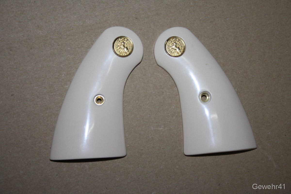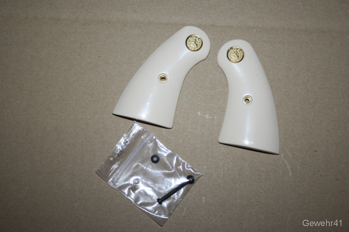 Sie kaufen diese neuen "Elfenbeim-Imitat" Griffschalen aus USA für den Colt Python. Wegen Fehlkauf abzugeben.