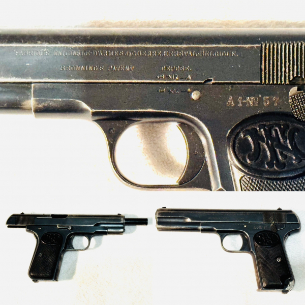Eine schöne, frühe FN 1903 mit militärischem Bezug – interessant für Sammler historischer Ordonnanz- und Browning-Modelle.