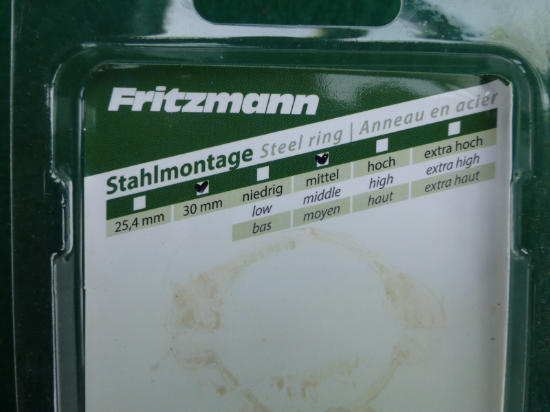 Es handelt sich um eine Stahlmontage mit Weaverprisma, einem 30mm Durchmesser und der Bauhöhe von 6mm.Die Klemmung erfolgt an den verstellbaren Hebeln, in Längsrichtung wird die Optik durch einen Stahlstollen begrenzt.