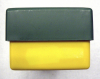 Es sind leichte Gebrauchsspuren (Reibung) vorhanden, aber keine Beschädigungen (Risse o.ä.). Auf der hinteren Seite befindet sich eine farbliche Veränderung (hellere Stelle im "Gelb" - sh. Bild).