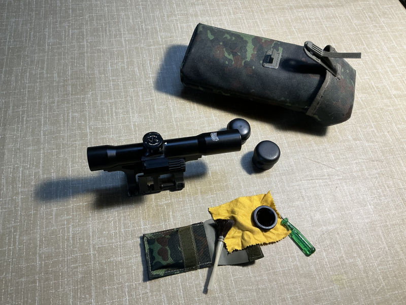 Verkaufe mein für H&K G3 oder H&K MP5/SP5 Zielfernrohr mit Spannmontage. Das ZF ist in einem sehr guten Zustand. Das Absehen ist beleuchtet und die Helligkeit kann stufenlos eingestellt werden, oder gar keine Beleuchtung:) Ich wollte mir noch ein G3 zulegen, entschied mich jetzt aber für ein SAKO TRG M10 in .338LM.