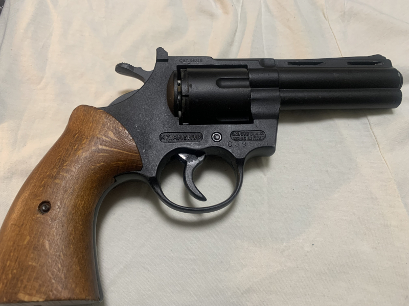Biete hier einen Revolver ME Magnum 38 , fünfschüssig - 9mm mit Holzgriffschalen an . Volle Funktion garantiert . Optisch 1A . Eine Waffe für echte Kerle , groß , wuchtig , satter Sound und tolles Handling . Koffer , Pyro-Becher , Bedienanleitung inbegriffen . Rest - siehe Bilder .Privatverkauf