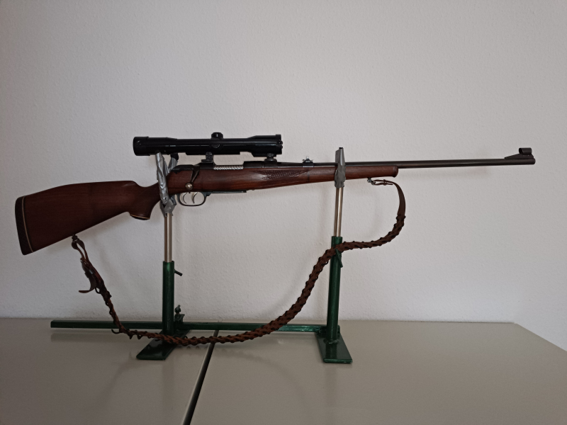 DER Spezialist für die Varmint, Berg- und Rehjagd auf große Entfernungen bis 300m! Lasergleiche Flugbahn mit geringem Geschossabfall bei hoher Geschossgeschwindigkeit und geringer Windempfindlichkeit. Sehr schöne und gepflegte Waffe mit Sonnenschliff auf dem Verschluss. Lauf blank, Felder und Züge scharf, Holz gepflegt mit geringen Gebrauchsspuren. Das montierte Zielfernrohr (Zeiss Diavari) mit Montage ist inbegriffen. Gegen Aufpreis (90,-€) gibt es noch ein zweites Magazin (selten).