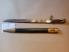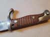 Zur Scheide: wurde wahrscheinlich nachträglich angefertigt aus (Kunst?)leder und Messing, das Bajonett sitzt zu locker darin.