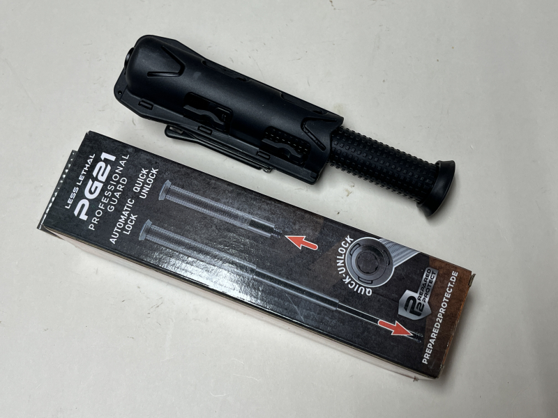 Die mitgelieferte hochwertige Polymerscheide öffnet den PG21 für eine sofortige Einsatzbereitschaft automatisch beim Ziehen. Beim Öffnen des Abwehrstocks greift automatisch eine mechanische Verriegelung, die den Stock zuverlässig offenhält.
