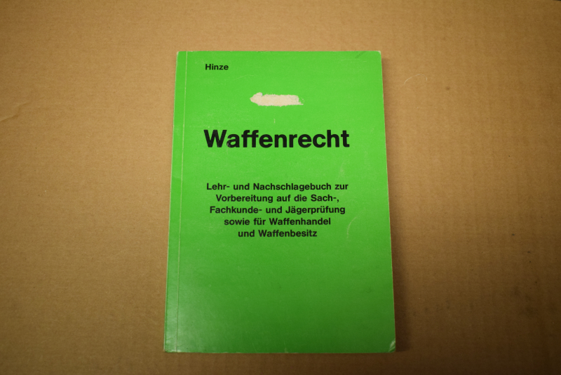 älteres Buch " Waffenrecht " von Rechtsanwalt Dr. jur. Rolf Hinze als Lehr- und Nachschlagebuch zur Vorbereitung auf die Sach-, Fachkunde- und Jägerprüfung sowie für Waffenhandel und Waffenbesitz. (367 Seiten)