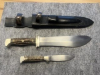 Gut erhaltenes Eickhorn Solingen Waidblatt bzw. Waidbesteck nach Frevert aus Nachlass. War nicht in Benutzung ist aber geschliffen. Auf dem kleinen Messer/Nicker ist noch das Eichörnchen und der Name Eickhorn zu erkennen, wenn man ganz genau hinschaut. Grüne Lederhülle hat Gebrauchsspuren an den Laschen zum Öffnen. Funktioniert aber alles, alle Nähte heil. Keine Nummern eingeschlagen. Altersnachweis (18 Jahre) bei Erwerb erforderlich. Weitere, bessere Bilder können gerne per Mail zugeschickt werden, die Auflösung geht scheinbar in der Auktion nicht besser - jedenfalls bekomme ich es nicht besser hin.