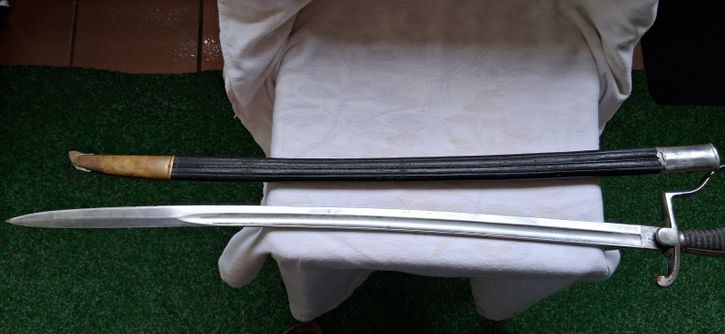 Schweizer Säbel mit Lederscheide. M 1883, wohl für höhere Offiziere. Unten an der klinge 2 kleine Chips, siehe Foto.