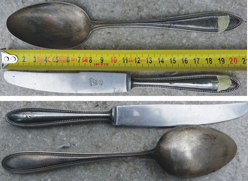Versilbertes Originalbesteck mit Luftwaffenadlern. Durch Ihr Gebot erkennen Sie an, dass es sich um eine Privatauktion ohne Rücknahme handelt. Haftung für Verlust bzw. Beschädigung der Sendung, die über das Maß der Haftung des Zustelldienstleisters hinausgehen, übernehme ich nicht. Zahlung innerhalb von 1 Woche. Versand 6,-€ versichert, nicht verhandelbar. Paypal NUR auf ANFRAGE!! Viel Glück beim Bieten!