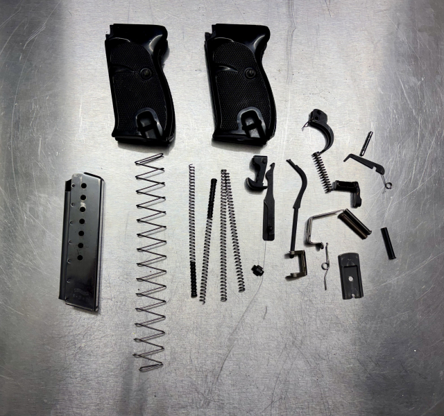 Sie bieten hier auf alles, was auf den Bildern zu sehen ist, mit Ausnahme des Tisches. Zwei Paar Griffschalen mit Schrauben, Federn etc