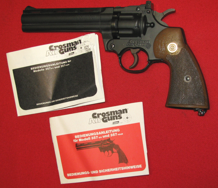 Zum Verkauf kommt ein ältere Crosman Revolver, ein Crosman 357 in 4,5mm mit F - Zeichen und Beschreibung