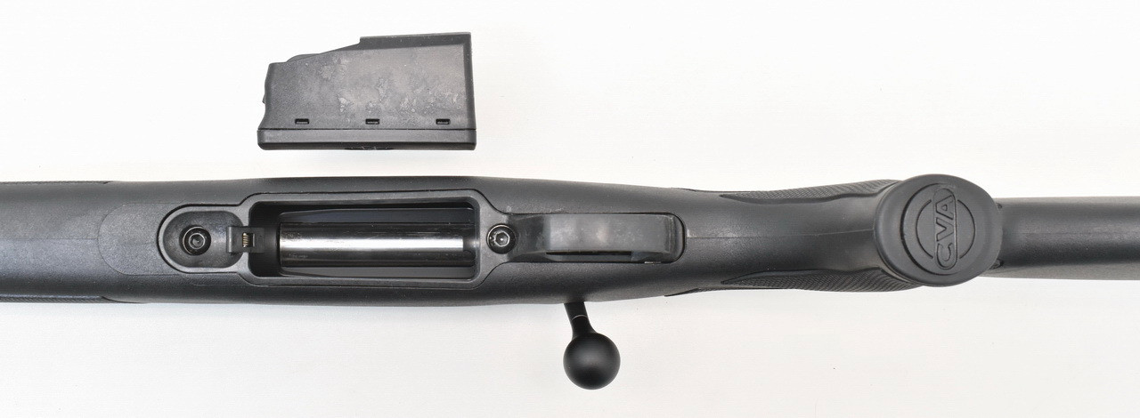Robuster Jagd - Repetierer aus spanischer Produktion. Die Connecticut Valley Arms Modell Cascade Basic. Stahl - Verschlußhülse. Zylinderverschluß mit 70° Öffnungswinkel und 3 - Warzen Verriegelung. Trockenstehender, einstellbarer Direktabzug. Seitliche 2 - Stellungs - Schiebesicherung. Einfach zu entnehmendes Einsteckmagazin für 4 Patronen. Spiegelblanker, 21,8" BERGARA Präzisionslauf mit 17,9mm Mündungsdurchmesser und 5/8-24" UNEF Laufgewinde. Abnehmbare, offene Hi-Viz Visiereinrichtung. 350mm langer, schwarzer Synthetikschaft für Rechts- und Linksschützen ( Schaftlänge gemessen vom Abzug bis Mitte Gummischaftkappe ). Mittels UTG Max Strength Quick Detachable Twist Lock ZF - Montage und 290mm Augenabstand wird von uns standardmäßig das variable AKAH 3 - 12 x 56 mit Leuchtabsehen 4 ( Leuchtpunkt ) und 63,5mm Objektivaußendurchmesser montiert.