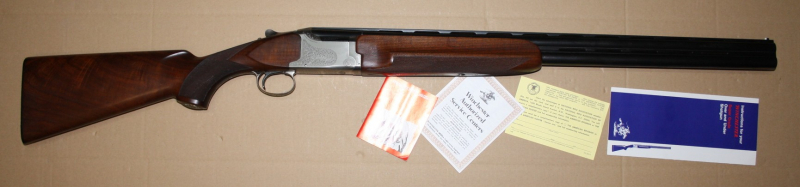 Sie bieten auf eine Bockdoppelflinte von Winchester Modell "XTR Super Grade Skeet" im Kal. 12/70. Die Flinte ist im guten Zustand mit leichten Gebrauchsspuren. Läufe und Funktion einwandfrei. Lauflänge 69cm, Schaftlänge 36cm, Gesamtlänge 111cm.