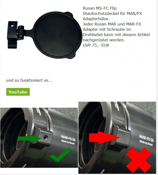 Original Rusan Objektivschutzdeckel zum aufklappen für die Rusan MAR Adapterhülse. Passend für MAR Hülsen wie auf dem Bild dargestellt.