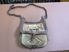 Zu verkaufen ist eine Jagdtasche aus Leder mit geflochtenem Netzbehang