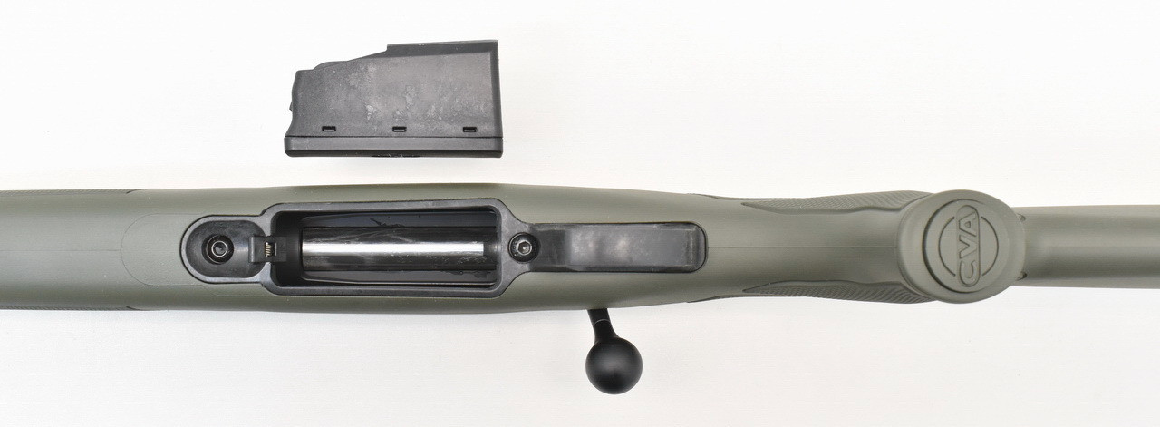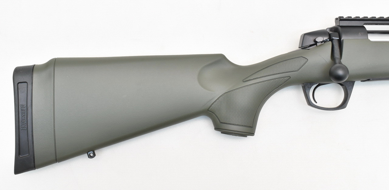 Robuster Jagd - Repetierer aus spanischer Produktion. Die Connecticut Valley Arms Modell Cascade Basic. Stahl - Verschlußhülse. Zylinderverschluß mit 70° Öffnungswinkel und 3 - Warzen Verriegelung. Trockenstehender, einstellbarer Direktabzug. Seitliche 2 - Stellungs - Schiebesicherung. Einfach zu entnehmendes Einsteckmagazin für 4 Patronen. Spiegelblanker, 21,8" BERGARA Präzisionslauf mit 17,9mm Mündungsdurchmesser und 5/8-24" UNEF Laufgewinde. Abnehmbare, offene Hi-Viz Visiereinrichtung. 350mm langer, grüner Synthetikschaft für Rechts- und Linksschützen ( Schaftlänge gemessen vom Abzug bis Mitte Gummischaftkappe ). Mittels UTG Max Strength Quick Detachable Twist Lock ZF - Montage und 290mm Augenabstand wird von uns standardmäßig das variable AKAH 3 - 12 x 56 mit Leuchtabsehen 4 ( Leuchtpunkt ) und 63,5mm Objektivaußendurchmesser montiert.