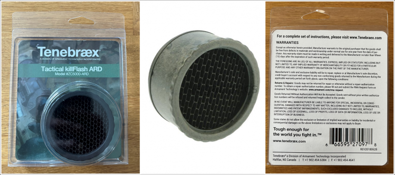 Tenebraex Wabenfilter ARD Killflash für March, Hensoldt 50mm Objektive Der Tenebraex Wabenfilter wird in das Objektivgewinde des Zielfernrohrs geschraubt. Die Wabenstruktur verhindert unliebsame Reflektionen der Linsenoberfläche, die die Gefahr eines aufspüren des Schützen in realen Gefechtssituationen reduziert, bzw. ganz verhindert. Miittlerweile existieren speziellen Laserdetektoren die Optiken auf mehrere Km Entfernung sichtbar machen können. Die Nutzung eines Wabenfilters dient als Gegenmaßnahme. Durch die Wabenstruktur reduzieren sie gleichzeitig unliebsame seitliche Lichteinflüsse.