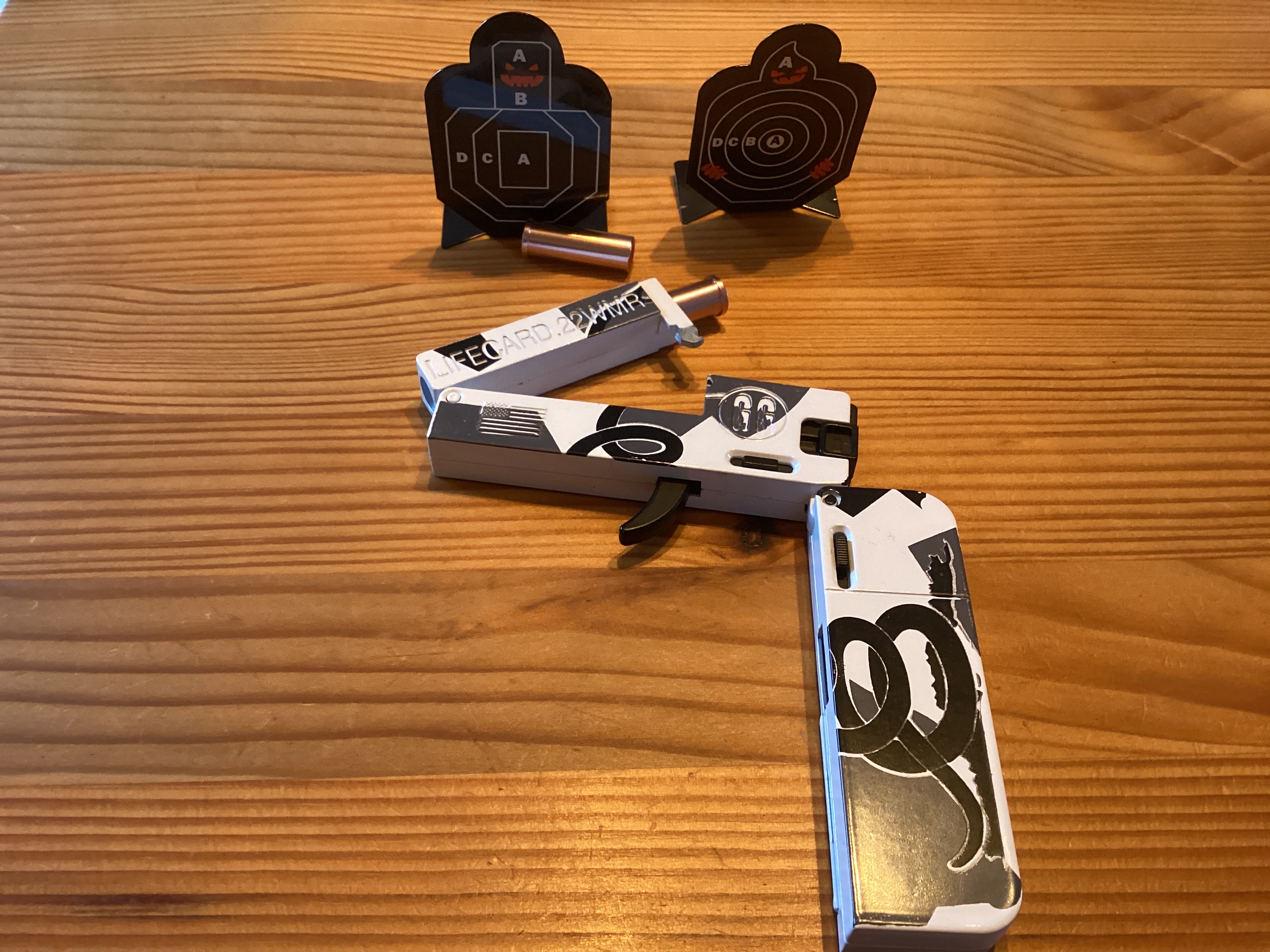 Derringer von GG, in Metall Ausführung, kein Plastik. Lässt sich wie das originale Vorbild zusammen klappen so das er dann wie ein Scheckkartenformat aussieht.
