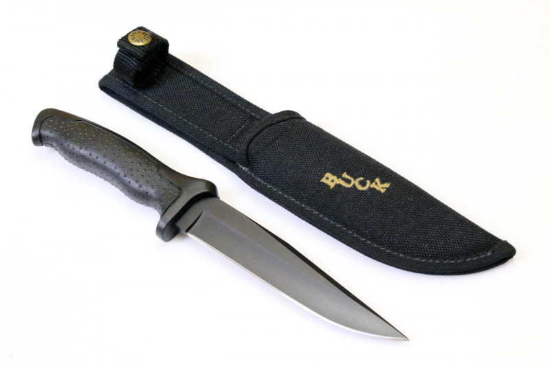 Das Messer in Full-Tang Ausführung. Ergonomisch strukturierter, rutschfester Griff aus Kraton.