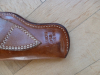 wie alle Smith & Wesson-Revolver mit N-frame bis zu einer Lauflänge von 4 Zoll. Alle Nähte sind okay, der Druckknopf hält die Waffe sicher fest. Das Holster ist mit geringem Druck zu öffnen. Das Leder hat Tragespuren, ist aber ansonsten einwandfrei.
