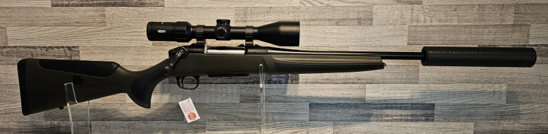 Komplettset, einsatzfertig montiert mit Zielfernrohr Meopta MeoHunter R5 3-15x50 RD SFP Absehen 4C auf Leupold PRW2 Stahlmontage, plus Schalldämpfer RCC Carbon 44 Hunter (Abbildung zeigt anderes ZF).