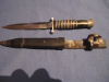 Alter Dolch von Hugo Köller Solingen Rostfrei mit aufwändiger Lederscheide , 23 cm lang, Klinge 13 cm, wohl 50 er Jahre, schönes Sammlerstück