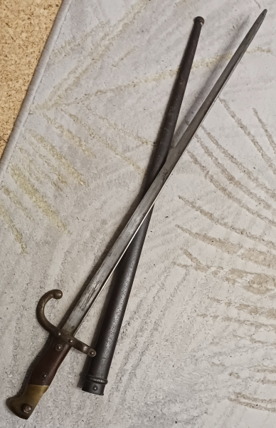Guten Tag,ich versteigere aus dem Nachlass meines Vaters ein paar Messer,Blankwaffen.Hier ein altes Bajonett.