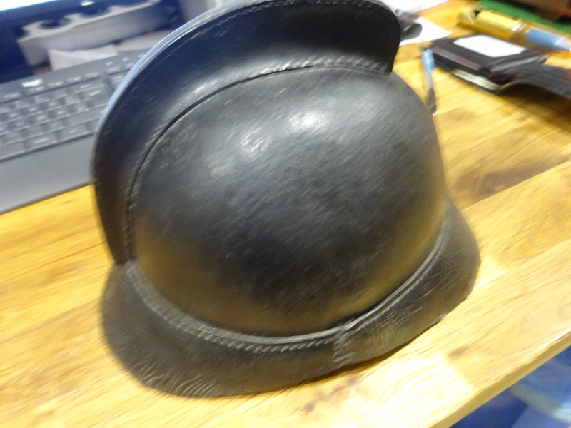 etwas ganz seltenes: originaler Lederhelm der kgl. preußischen Feuerwehr um 1900 -. speziell für Elektriker - ohne metallene Applikationen- in einem Superzustand für das Alter, mit Lederkamm, siehe Foto und mein egun