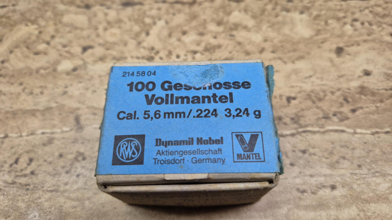 Biete 100 Geschosse Cal. 5,6 mm / .224 3,24g in Originalverpackung.