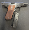 Sie bieten auf eine Gebrauchspistole Smith & Wesson Mod.39 Kal.9mm Luger mit Original Holzgriffschalen. Beschuß 1969.