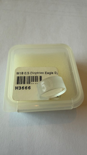 Zum Verkauf steht ein Centra / MEC Eagle Eye Change 0,5 Dioptrien M18 Linse aus hochwertigem, superentspiegeltem Glasmaterial BaK-4 mit höchster Lichtdurchlässigkeit in Originalverpackung. Neuwertiger Zustand. Neupreis bei Klingner 36,50€. Werden mehrere Teile ersteigert, kann alles selbstverständlich in einem Paket versendet werden. Keine Garantie! Keine Rücknahme!