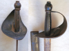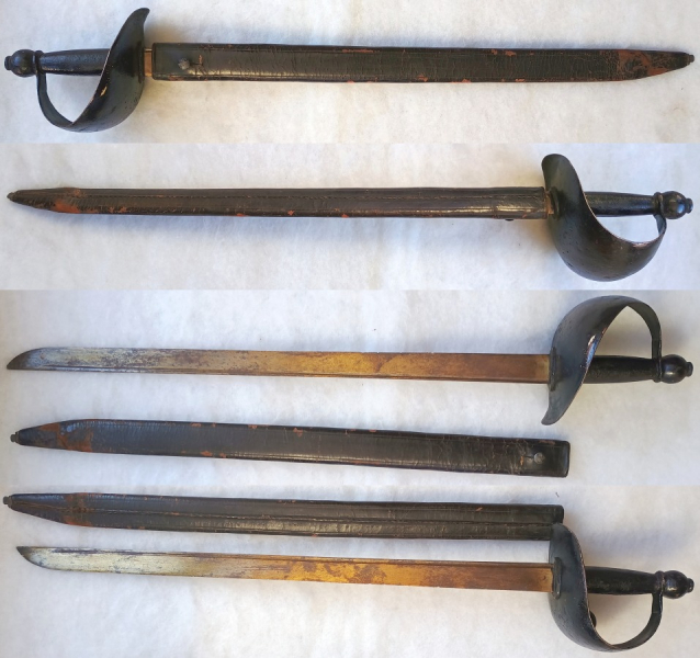 Entersäbel ist ohne sichtbaren Hersteller oder Abnahmestempeln, Lederscheide mit verdeckten Beschlägen, leicht geschrumpft und am Ort leicht beschädigt. Alle sichtbaren Teile mit schwarzer Farbe überzogen (muss so sein). Geschlossener Korb, Fingerschlaufe intakt. Gesamtlänge ca. 82 cm, Klingenlänge ca. 64 cm. Klinge mit farblosem (gedunkelten) Lack überzogen. Sehr massives Stück mit Gebrauchsspuren.