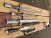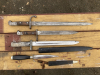 Hallo bei dem Grabendoch fehlt ein Stück der Parierstange und das Leder am Druckknopf ist beschädigt!Bem Notbayonett die Scheide ist gespachtelt und überlackiert!Bayonett lässt sich nicht ganz einführen!Gefäss ist narbig!Die andern Bayonette sind ohne Scheiden!Sämtliche Drücker gehen!Stücke sind ungereinigt und leicht zu verbessern