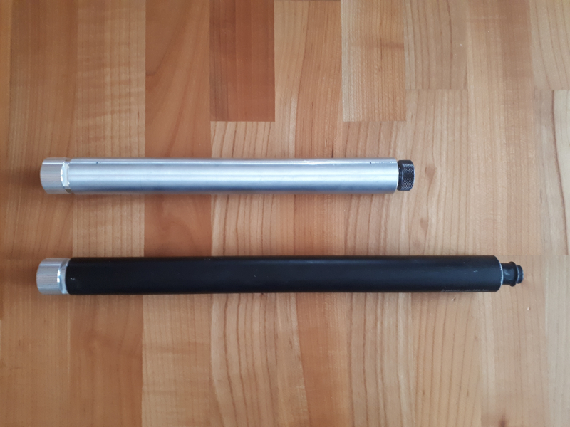 Verkaufe 2 Stück Pressluftkartuschen für Feinwerk LG Alu schwarz 40 cm lang und silber 31 cm lang max 200 bar Fülldruck. Bei beiden ist der TÜV bereits abgelaufen. Jedoch in einem sehr gutem Zustand und voll funktionsfähig. Eine Kartusche mit Entlüfter zum ablassen der Luft und ein Schutz fürs Gewinde. Keine Gewährleistung, kein Umtausch und keine Rücknahme! Versandkosten ins EU Ausland bitte vorab erfragen!