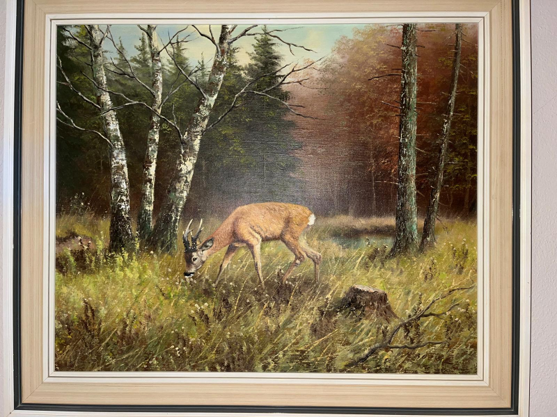 Das Werk besticht durch seine detailreiche Ausarbeitung, die lebendige Darstellung des Wildes sowie die stimmungsvolle Farbgebung. Der Künstler fängt die Kraft und Würde des Rehbocks in natürlicher Umgebung meisterhaft ein – ein Blickfang für Jagdzimmer, Wohnzimmer, Büro oder Sammler.