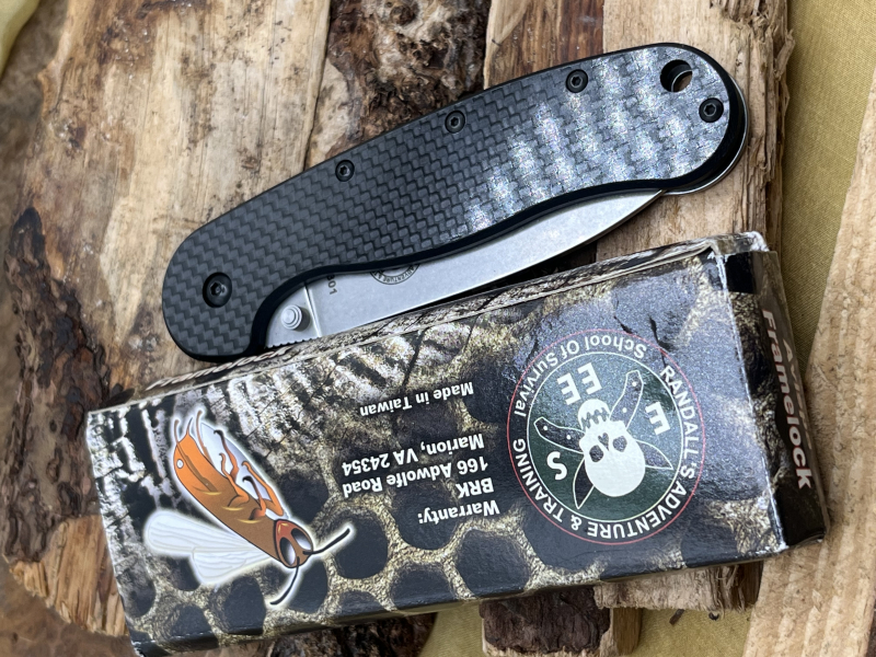 D2 Stahl • ca. 3,5" (8,8 cm) Klinge • Carbon-Fiber/G10 • Framelock • Daumenpin • Pocket-Clip • Made in Taiwan