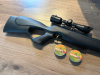Verkaufe hier eine wunderschöne und selten geschossene Weihrauch HW97K Black-Line im Cal. 4,5mm (.177) Diabolo und schwarzem Synthetik-Lochschaft. Das Gewehr hat einen sehr guten Zustand. Unten am Schaft habe ich eine kurze Picatinnyschiene für z.B. einem Zweibein angebracht. Habe damit keine 500 Schuss abgegeben. Verkaufe sie, weil ich zu wenig Zeit für das gute Stück habe. Weitere Informationen und technische Daten sind im Internet zu finden. Mit dabei ist noch ein Walther 4x32 Compact Zielfernrohr (ebenfalls sehr guter Zustand) und 1000 Schuss Diabolos.