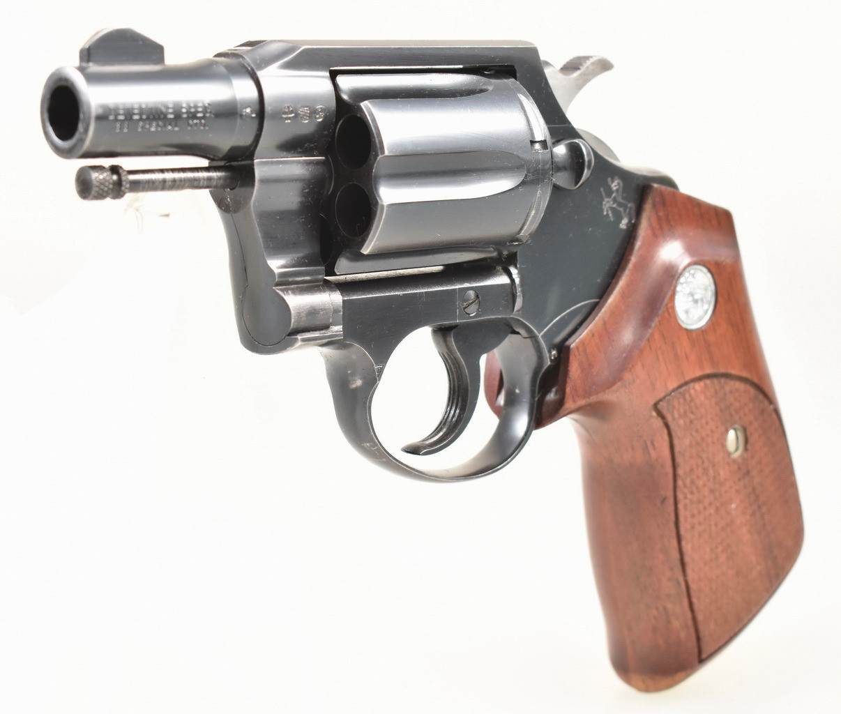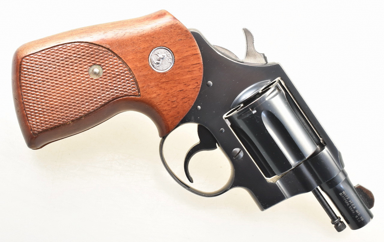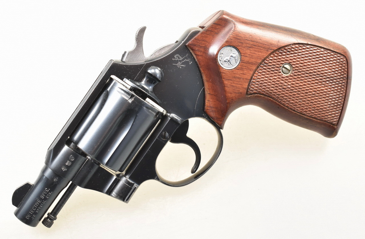 Sechsschüssiger, brünierter Double - Action Ganzstahl - Revolver aus Produktion des bekannten amerikanischen Herstellers COLT. Das Modell " Detective Special " in der 2. Ausführung. Spiegelblanker Lauf. Münchener Beschuß 1964. Holzgriffschalen mit Fischhautmuster. Braunes Safariland Lederholster. Trage-, Gebrauchs- und Lagerungsspuren sind vorhanden. Details siehe Bilder.