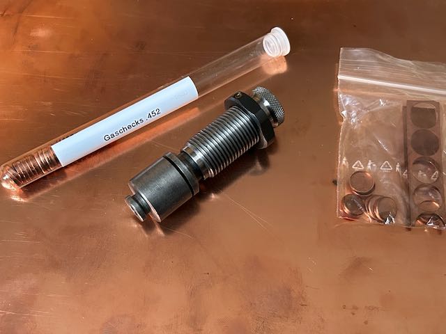Zum Verkauf steht eine Spezialmatrize zur Herstellung von Gas Checks mit einem Durchmesser von 0,452“. Verkauf aufgrund eines Kaliberwechsels. Die passende Gießkokille biete ich in einer separaten Auktion an.