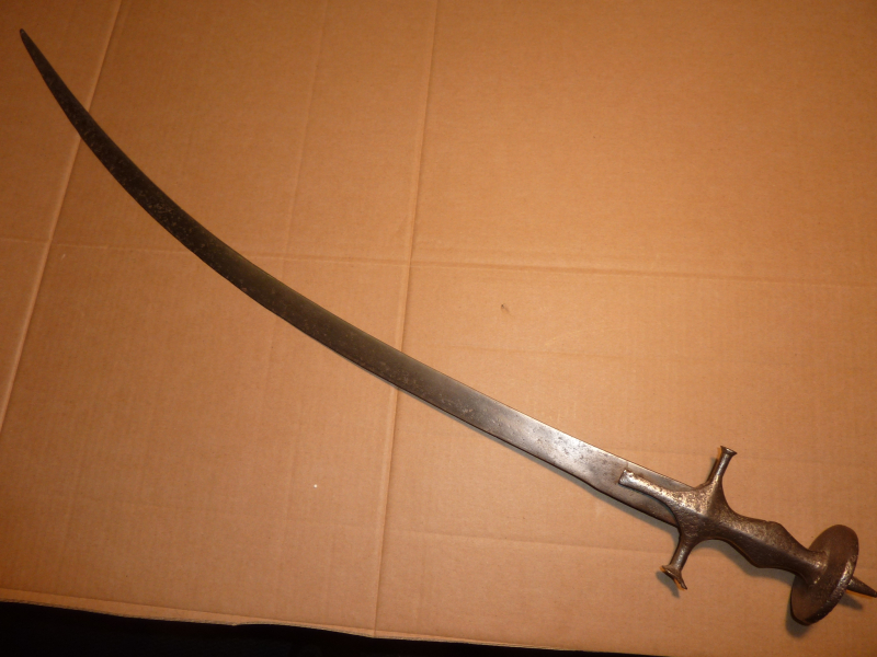 Schöner schlanker gut erhaltener alter Tulwar. Gesamtlänge 88 cm, Klinge 75 cm.