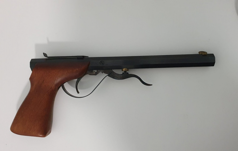 Leider ist hinten am Griff ein Stück abgebrochen, ich habe sie so von einem Schützenfreund bekommen.
