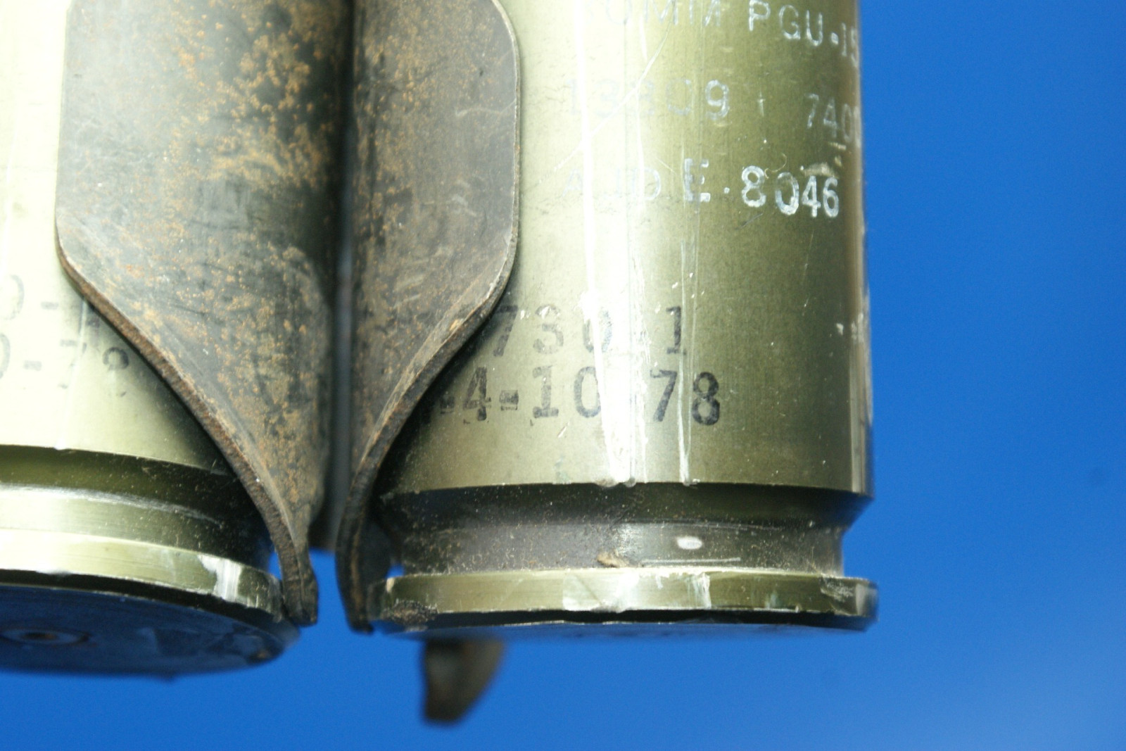 Bei den Hülsen handelt es sich um das Kaliber 30x173, wobei der Hersteller Unbekannt ist. Auf den Hülsen befindet sich die Bezeichnung BOMM PGU-15/B MOD. Der Patronen Gurt weißt auf der Rückseite MFT-1 (zwei Glieder) und MFT-2 (ein Glied) auf, welches vermutlich auf den Hersteller Metaalwarenfabriek Tilburg aus den Niederlanden hinweist.