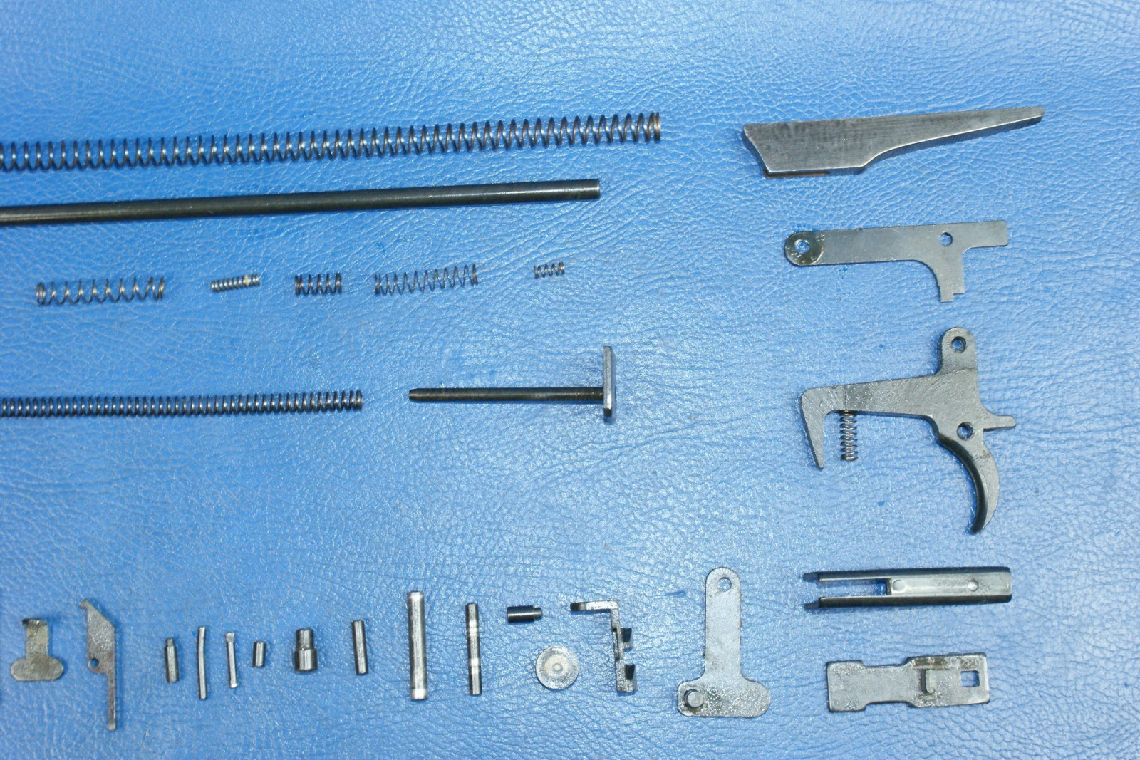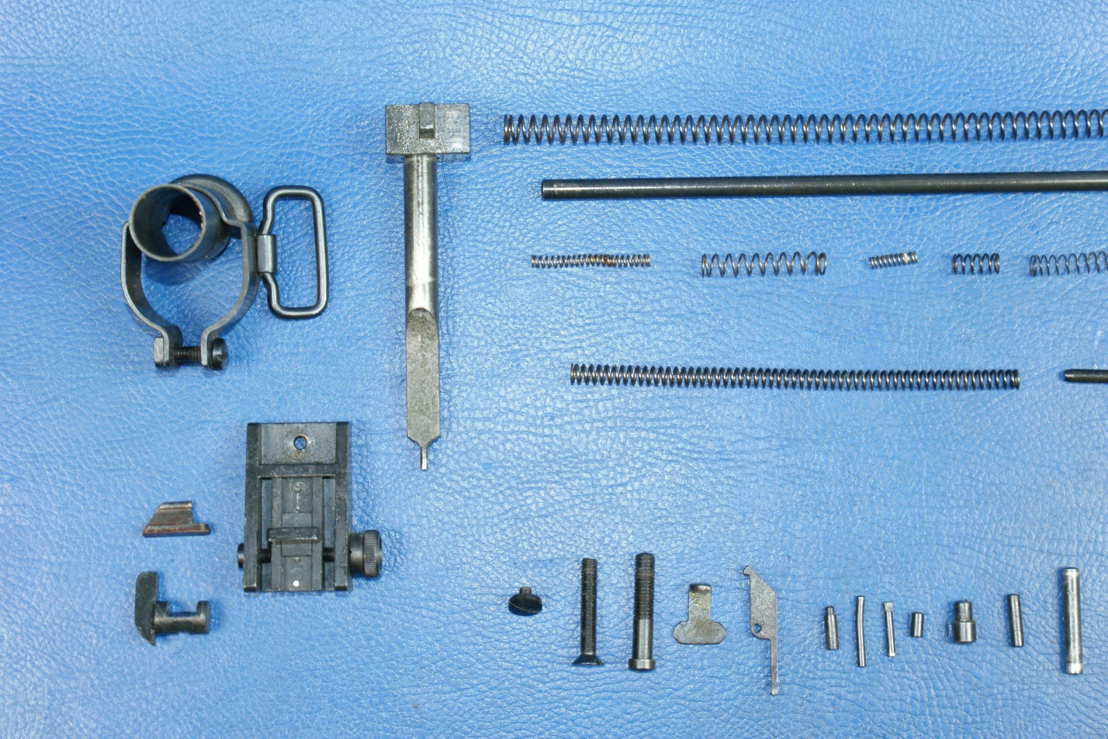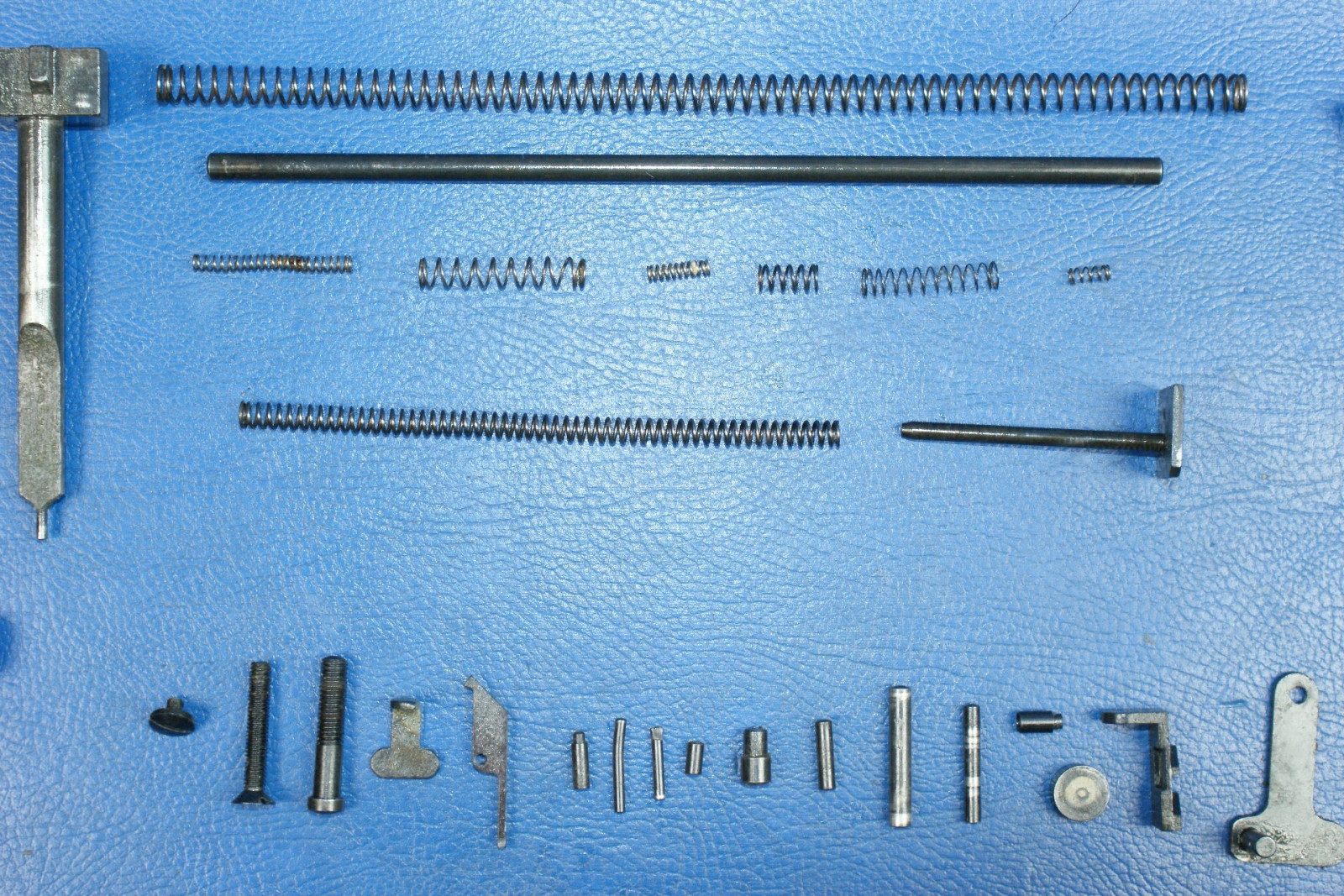Diverse Kleinteile wie Federn, Stifte, der Abzug, das Korn, die Kimme. Teile sind auf den Fotos ersichtlich.