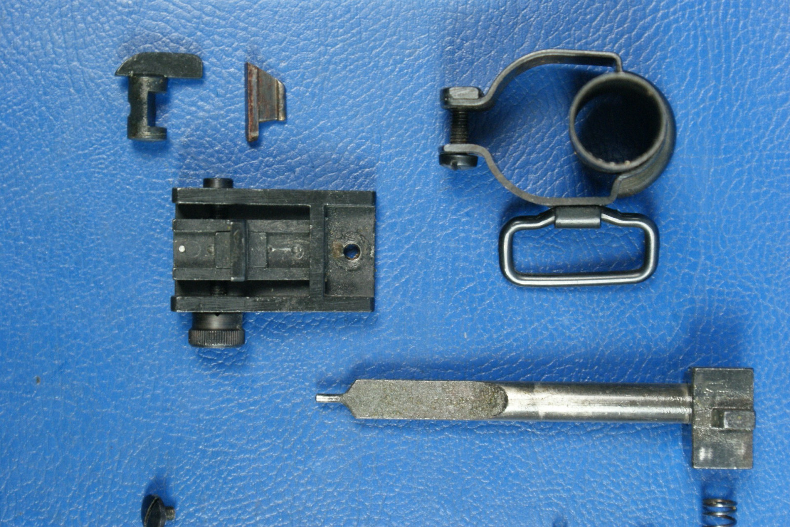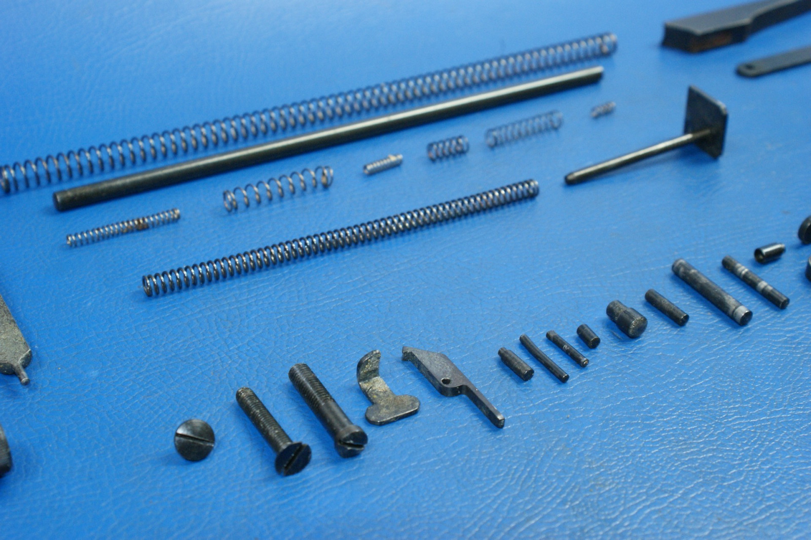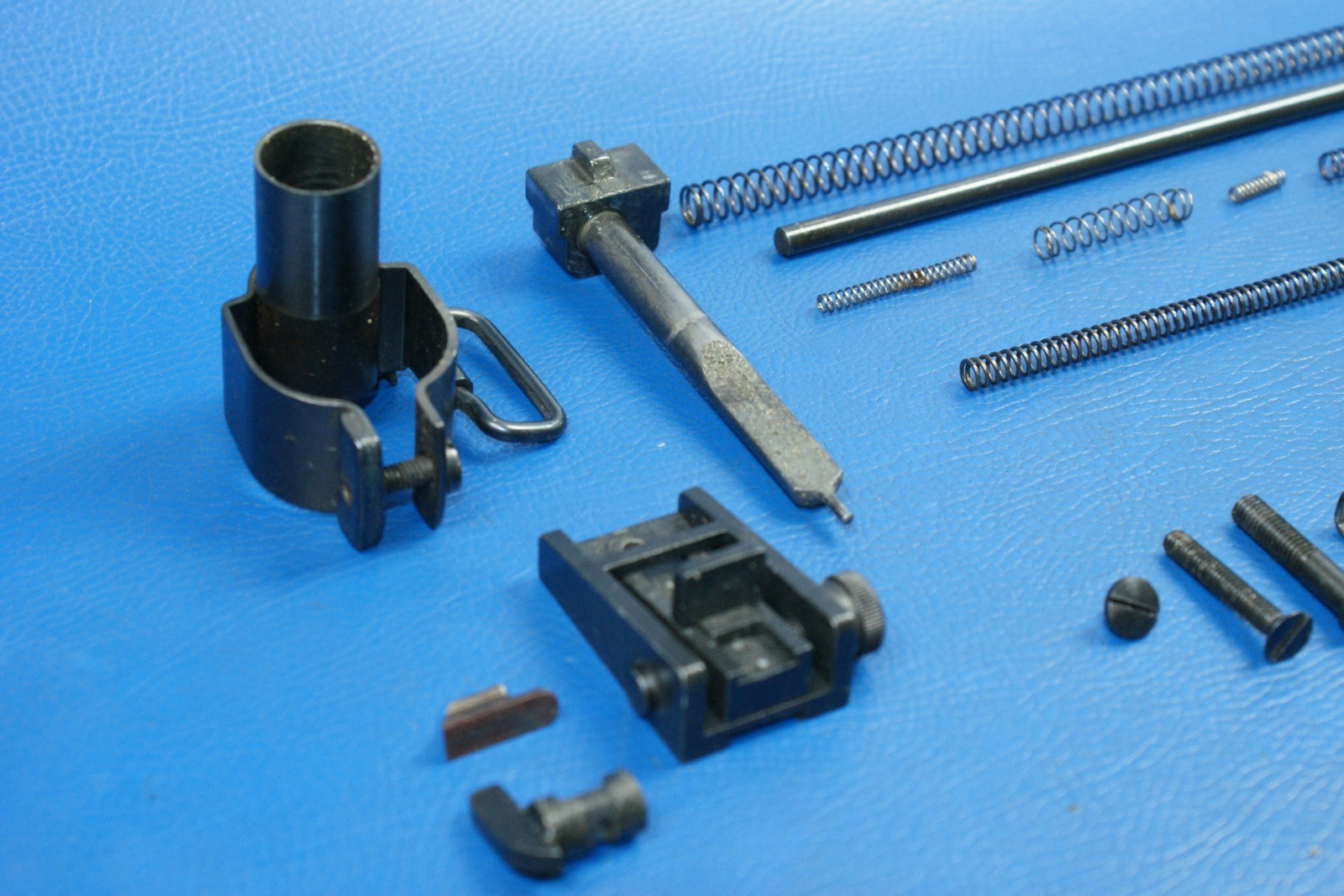 Diverse Kleinteile wie Federn, Stifte, der Abzug, das Korn, die Kimme. Teile sind auf den Fotos ersichtlich.
