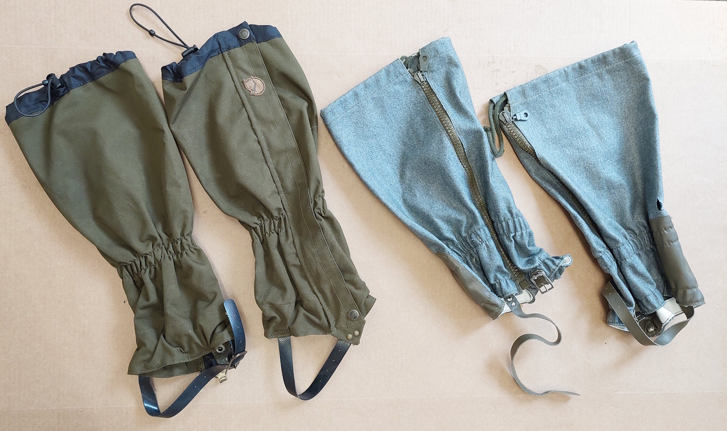 Beinlinge, Gamaschen, Schweizer Armeegamaschen, 1Paar von Büttiker (defekt), 1 Paar von Fjällräv