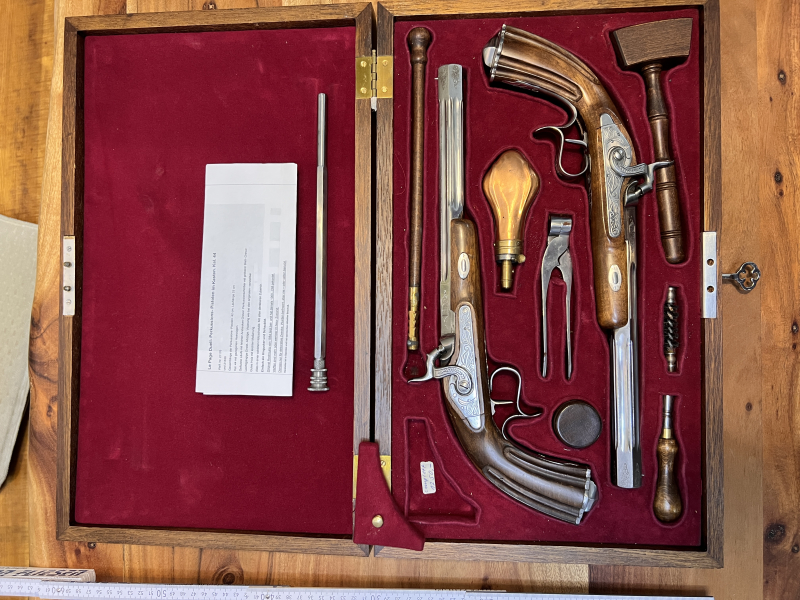 Gesamtlänge der Perkussions-Pistolen: 42cm,