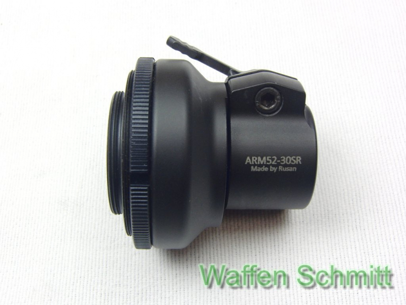 Sie bieten auf einen Rusan Adapter ARM52-30SR passend für Swarovski Zielfernrohre mit SR Schiene mit Gewinde M52x0,75 mit Reduzierring APS22 für Gewinde M33,5x0,75. Einwandfreie Funktion. Guter Zustand!!!