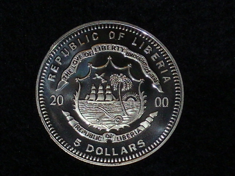 Liberia 5 Dollar 2000 First man on the moon, 26,92 gr. - Durchmesser 40,30